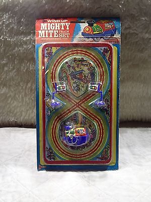 Title (ebay affiliate link): Vintage Elmar Wind Up Toy Train Mighty Mite Set Monkey & Track Tin track & train