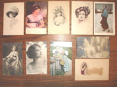 Lot of (10) Vintage Postcards - Pretty Ladies - Antique PCs - c. 1905-1949
