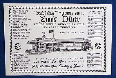 Title (ebay affiliate link): Vintage (late50's/early60's) ZINN'S DINER & GIFT SHOP Postcard Denver,PA UNUSED