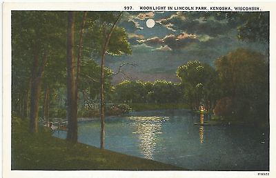 Kenosha, WI, Wisconsin, Moonlight in Lincoln Park, Unused Vintage Postcard a2274