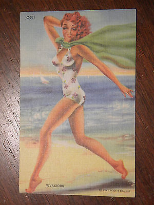 Vivacious, Linen postcard, Vintage Glamour Girl, Curt Teich, C261