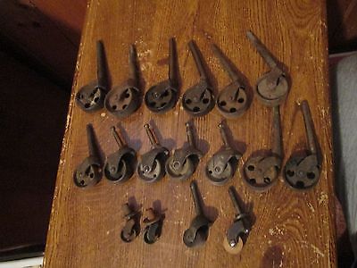 Lot of Cast Iron & Some Wood Antique Casters Wheels All Rolling Fine STEAMPUNK