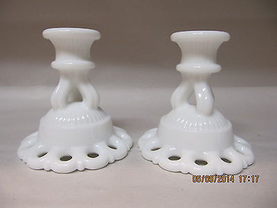 Pair Westmoreland Milk Glass Candlesticks --- Doric