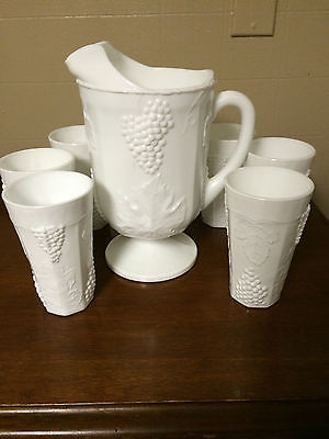 Title (ebay affiliate link): Vintage Milk Glass "Grape Vine" Pitcher And 6 Matching Glasses