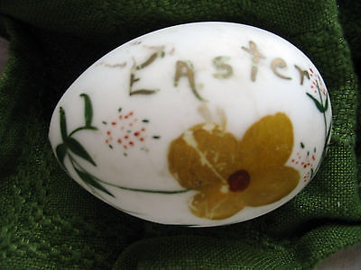 Antique VICTORIAN Large 4 1/2" Painted EASTER EGG milk glass HAND BLOWN