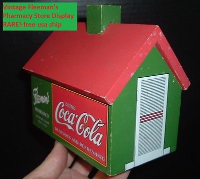 Antique 1940's Coca Cola Soda Pop Coke FLEEMANS PHARMACY Wood Store Display