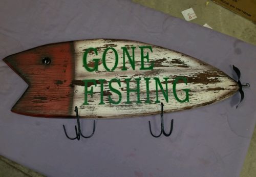 Title (ebay affiliate link): ROD & REEL FISHING lure GONE FISHING SIGN Hooks FLY FISHING POLE Tackle REPALA