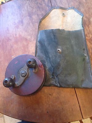 Antique Wooden Fishing Reel with Black Canvas Case
