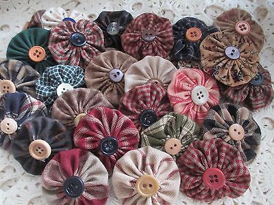 30 Small Primitive Self Handmade Fabric Yoyo/Button Bowl Fillers