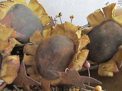 FIVE NEW PRIMITIVE FABRIC SUNFLOWERS / FLOWERS BOWL FILLERS, ORNIES