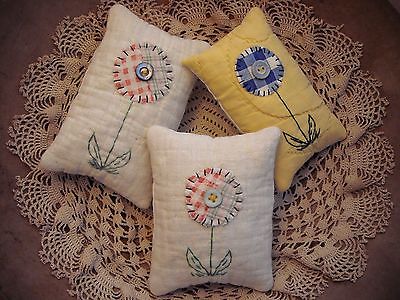 Trio Primitive Tiny Fabric Flower Pillow Bowl Fillers from Vintage Quilt Blocks