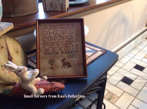 Title (ebay affiliate link): PRIMITIVE EARLY STYLE Faith Harris SAMPLER REPRO