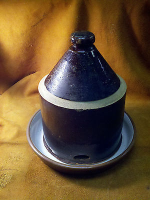 ANTIQUE FOUNTAIN STONEWARE FARM CHICKEN POULTRY FEEDER/WATERER CROCK VTG