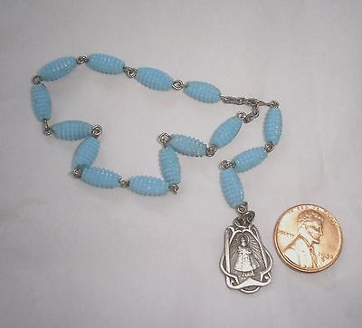 Vintage Catholic Chaplet INFANT JESUS OF PRAGUE, Unusual Blue Milk Glass Beads