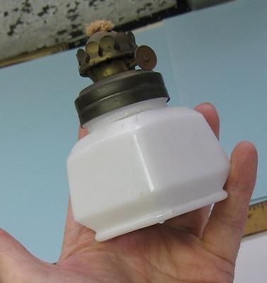 antique miniature oil lamp kero white milk glass 4" tall to burner top 4 sides