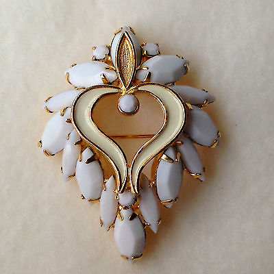 Vintage Faux Milk Glass and Enamel Brooch/Pin