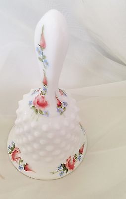 Adorable Vintage Fenton Milk Glass Hobnail Hand Painted Roses By B Shinn 5 7/8"
