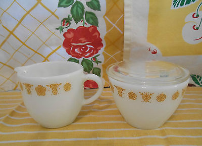 Vintage PYREX Milk Glass Butterfly Gold Creamer Cream Pitcher & Sugar Bowl Set