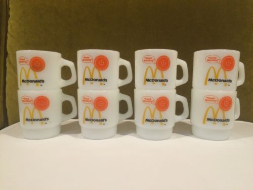Title (ebay affiliate link): Vintage 70's Fire King Milk Glass MCDONALDS Advertising 8PC Coffee Mugs Lot