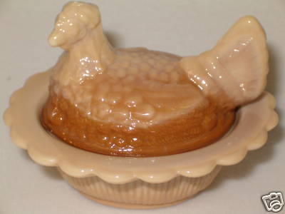AMBER & MILK SLAG GLASS HEN CHICKEN ON NEST BASKET DISH