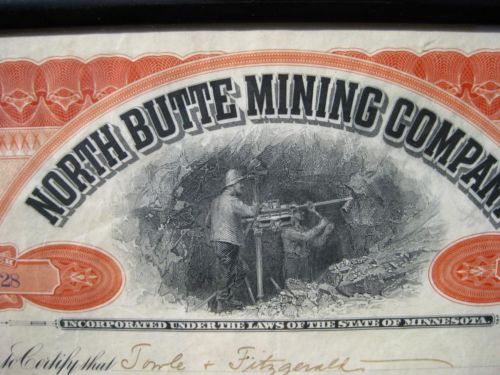 Title (ebay affiliate link): North Butte Mining Company Old Framed Stock Certificate 1908 - Great Graphics