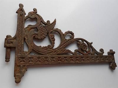 FABULOUS ANTIQUE ORNATE CAST IRON OIL LAMP BRACKET HOLDER HOOK HANGING BASKET