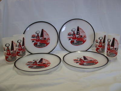 MILK GLASS FIRE KING PLATES & MATCHING TUMBLERS SET 4 E