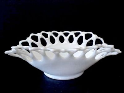 ANTIQUE WESTMORELAND~DORIC~LATTICE MILK GLASS ART BOWL