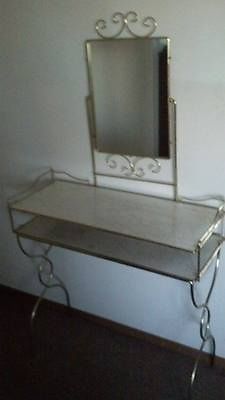 GOLD BRASS 2 TIER MELAMINE SHELF VANITY TABLE W/ SWIVEL MIRROR art nouveau