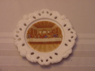 OLD MILK GLASS FIGURAL ANGEL LAST SUPPER PLATE