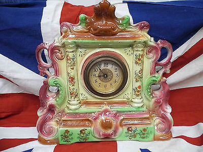 Antique Victorian China Mantle clock, very decorative, Strasburg Ware.