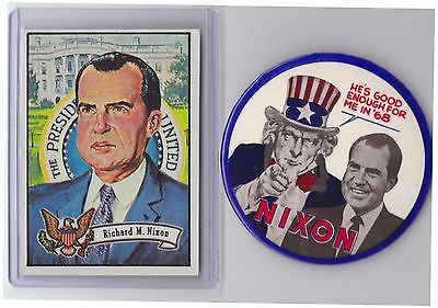 Title (ebay affiliate link): 1968 Richard Nixon political button, plus Topps trading card