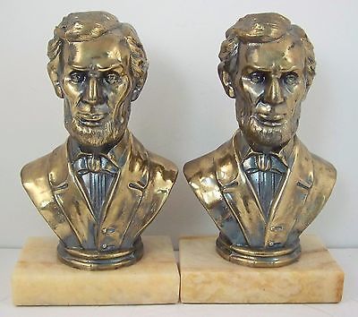 VINTAGE ABRAHAM LINCOLN BUST BRASS FINISH MARBLE BASE BOOKENDS