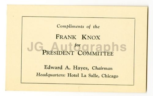 Title (ebay affiliate link): Frank Knox - U.S. Navy Secretary - Presidential Campaign Compliments Card