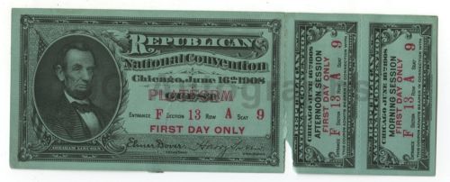 Title (ebay affiliate link): 1908 Republican National Convention - Original Ticket - William Howard Taft