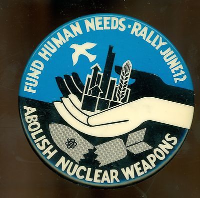 Vintage 1970s anti-War Abolish Nuclear Weapons Find Human Needs Pinback Button