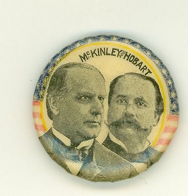 Vintage 1896 President McKinley Hobart Jugate Political Campaign Pinback Button