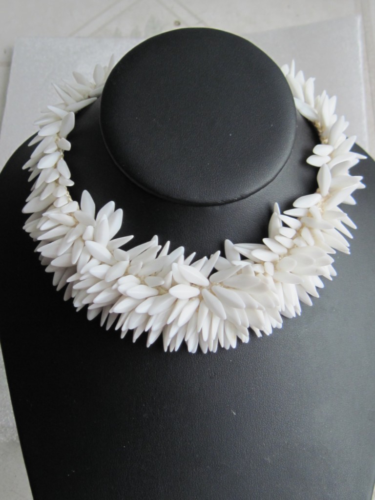 VINTAGE W GERMANY MILK GLASS FUNKY CLUSTER NECKLACE