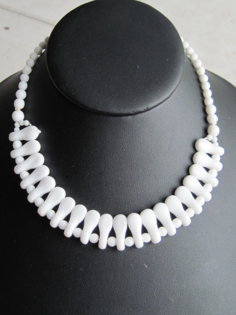 VINTAGE W GERMANY MILK GLASS ART DECO BEAD NECKLACE