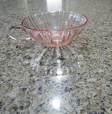 PINK DEPRESSION GLASS BOWL WITH HANDLE