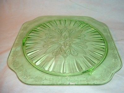 Title (ebay affiliate link): Jeannette Adam Depression Glass Green 3 Toed Cake Plate