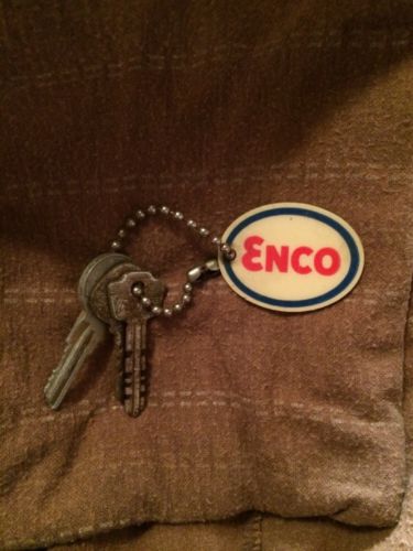 Vintage Antique Enco Happy Motoring Keychain W/ 3 Keys Included Advertisement