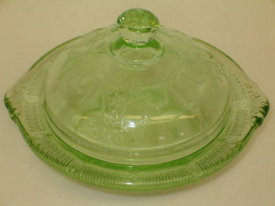 DEPRESSION GREEN GLASS BALLERINA GIRL CAMEO BUTTER DISH