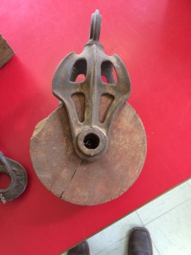 Title (ebay affiliate link): Large Cast Iron & Wood Wheel Barn Pulley Pully Farm Hay Tool Rustic Decor Works