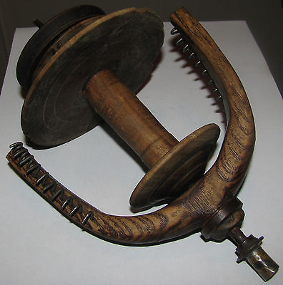 Antique primitive spinning wheel flyer bobbin spool Lithuania European 1900