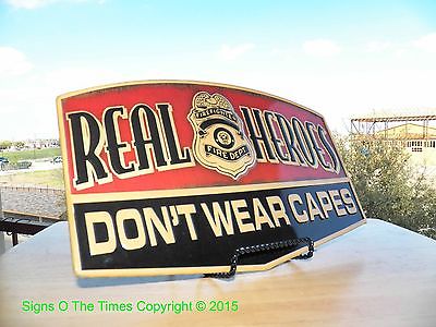 Firefighter Real Heroes Don't Wear Capes 3D Sign Law Badge Marshall Fire Man USA