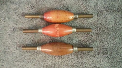 3 Antique Vintage Double End Brass Wood Handle Clock Spring Winders