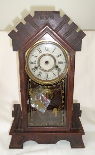 Title (ebay affiliate link): ANTIQUE New Haven Mission Style Walnut MANTEL Shelf CLOCK CASE Face,Gong,Hands