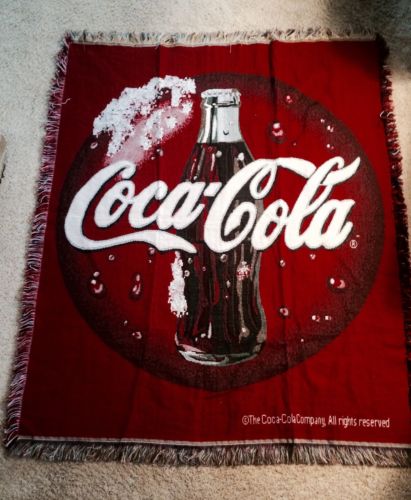 Title (ebay affiliate link): Coca-Cola Bottle Button Fringed Afghan Blanket Throw