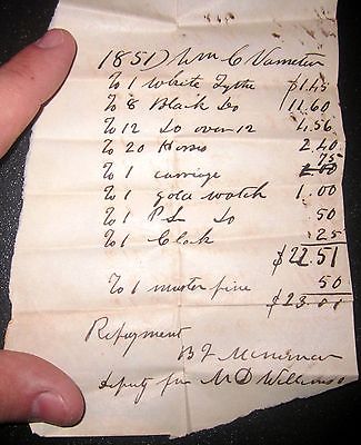 Title (ebay affiliate link): 1851 Moorefield Virginia Slave Tax Invoice Muster Fine 20 Black Slaves